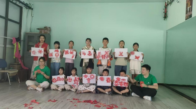 ??在掌握基本技巧之后,孩子们纷纷拿起剪刀,开始动手尝试剪制简单的“春”字,窗花等图案。初次接触,剪出的作品略显稚嫩,但孩子们脸上都洋溢着成就感。在过程中,孩子们兴奋地说:“原来剪纸这么有趣!我要把作品贴在家里的窗户上!”共同参与的老师也表示:“这样的活动既能让孩子动手动脑,又能感受传统文化,非常有意义。”