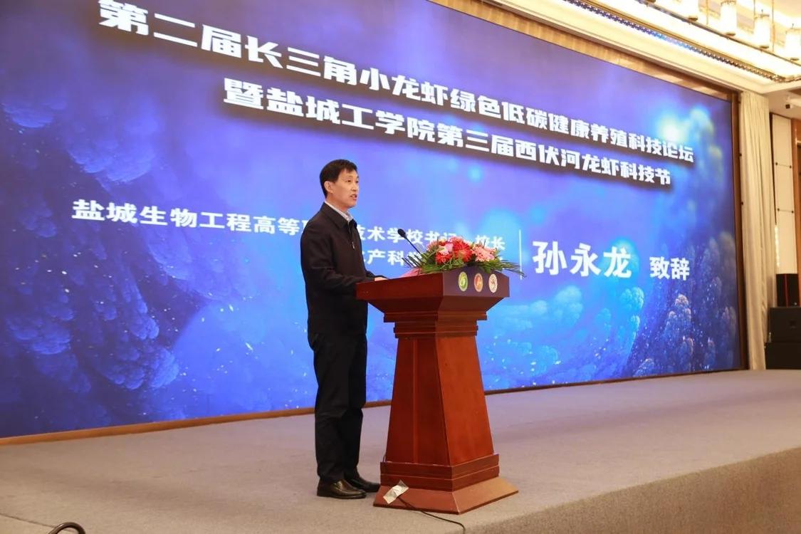 盐城市农业农村局党委副书记、副局长孙新建在致辞中指出:科技创新是渔业发展的第一动力,我们要以此次论坛为重要契机,全面了解、深刻掌握小龙虾产业的前沿动态、高端成果,强化科技创新支撑,推进绿色转型发展,努力推动“十四五”渔业高质量发展迈上新台阶。