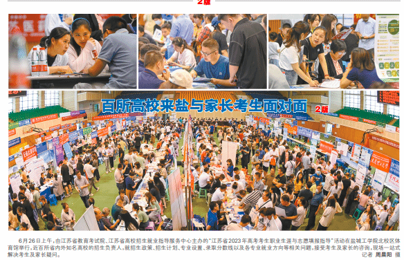 盐城晚报讯 6月26日,江苏省2023年高考考生职业生涯与志愿填报指导咨询会(盐城分会场)举行,全国各省市百所优质高校齐聚盐城,在真人赌博游戏_澳门赌博网-app*官网北校区体育馆内设立咨询台,为盐城考生和家长提供专业权威的高考志愿填报咨询服务。