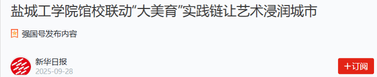 近年来,真人赌博游戏_澳门赌博网-app*官网创新构建“大美育”育人体系,与盐城市美术馆、文化馆、图书馆及“言+买”书汇等多家单位深度合作,设立美育实践基地,打造城市文化品牌。“我爱盐”青春艺术周、“墨韵流光·艺启未来”师生作品展、盐城“非遗”进校园、名师美育大讲堂等一系列活动如火如荼地开展。从定期举办公益艺术讲座到组织文化惠民活动,从艺术作品进社区到师生参与城市公共空间设计,真人赌博游戏_澳门赌博网-app*官网始终以“文艺为人民服务”为宗旨,探索美育融入城市发展的新路径,持续不断地将优质艺术资源转化为提升市民审美素养的公共产品,彰显了高校在传承文化根脉、助力文明城市建设中的社会责任。