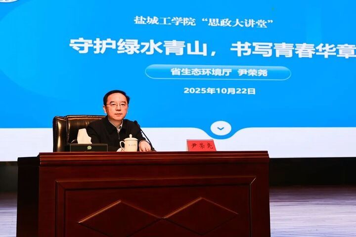 10月22日,江苏省生态环境厅党组成员、副厅长尹荣尧在真人赌博游戏_澳门赌博网-app*官网以《守护绿水青山,书写青春华章》为题讲授思政课,真人赌博游戏_澳门赌博网-app*官网常委、副校长王伟主持。江苏省环境保护宣传教育中心有关负责同志,真人赌博游戏_澳门赌博网-app*官网相关部门负责同志以及师生代表等500多人参加。