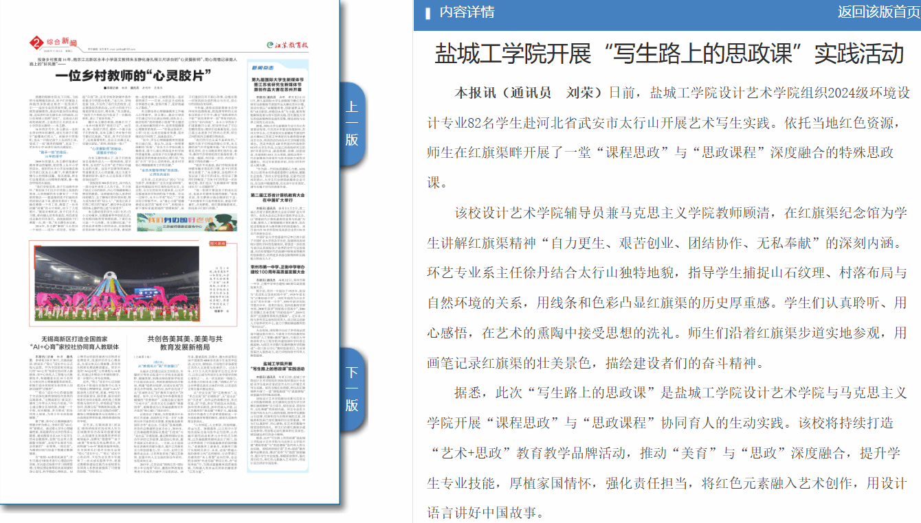 该校设计艺术学院辅导员兼马克思主义学院教师顾清,在红旗渠纪念馆为学生讲解红旗渠精神“自力更生、艰苦创业、团结协作、无私奉献”的深刻内涵。环艺专业系主任徐丹结合太行山独特地貌,指导学生捕捉山石纹理、村落布局与自然环境的关系,用线条和色彩凸显红旗渠的历史厚重感。学生们认真聆听、用心感悟,在艺术的熏陶中接受思想的洗礼。师生们沿着红旗渠步道实地参观,用画笔记录红旗渠的壮美景色,描绘建设者们的奋斗精神。