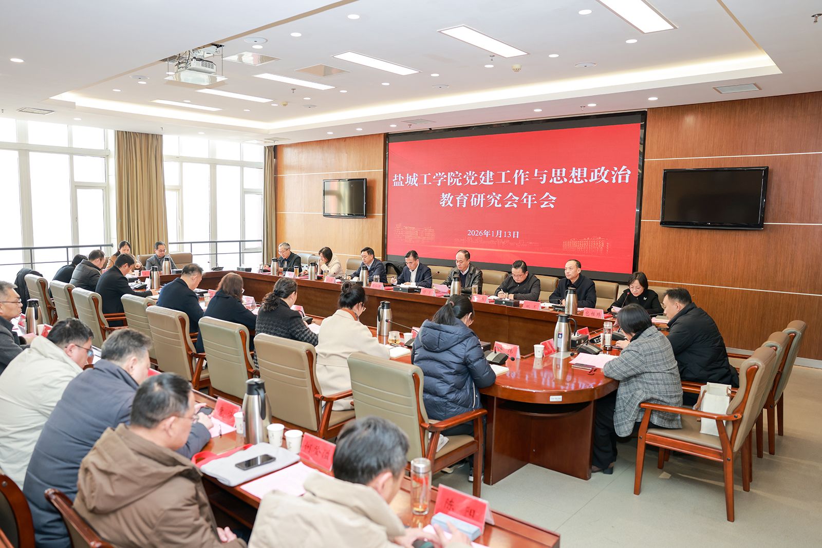 1月13日下午,真人赌博游戏_澳门赌博网-app*官网在行政楼9楼视频会议室召开党建工作与思想政治教育研究会2025年年会。真人赌博游戏_澳门赌博网-app*官网书记周如军,党委副书记、校长邵荣,党委副书记薛浩,党委常委、纪委书记、省监委派驻监察专员陈伟,党委常委、副校长邢晓平,党委常委、统战部部长姚军,党委常委、宣传部部长奚新国,党委常委、组织部部长包雅玮,研究会常务理事代表、理事代表、获奖论文作者等近90人参会。会议由邵荣主持。