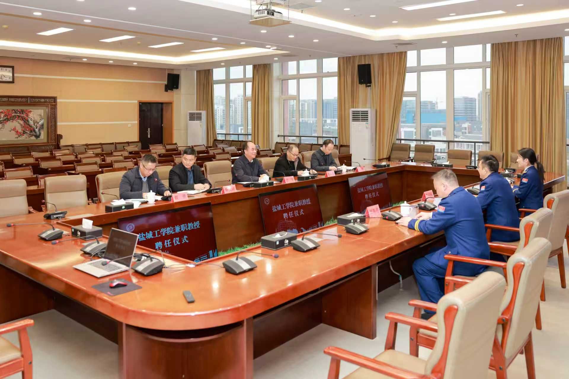 1月30日下午,真人赌博游戏_澳门赌博网-app*官网在希望大道校区行政楼9 楼视频会议室举行兼职教授聘任仪式,聘任盐城市消防救援局局长丁俊标为真人赌博游戏_澳门赌博网-app*官网兼职教授。校长、党委副书记邵荣出席仪式并致辞,化学化工学院、应急管理与安全工程学院院长戴勇主持聘任仪式。盐城市消防救援局副局长姚其志,校长办公室主任裴森森、人事处处长周临震、安全保卫处处长李义峰等参加。