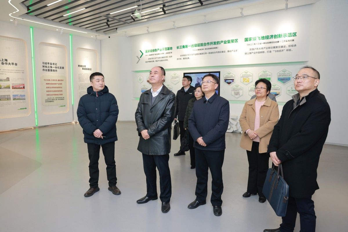 邵荣一行还参观了沪苏大丰集聚区产业服务中心规划展示馆,详细了解集聚区的发展定位、产业生态布局、招商引资成效及未来战略蓝图,对沪苏集聚区作为“长三角”一体化重要载体、历经十年耕耘取得的成绩给予高度赞誉。