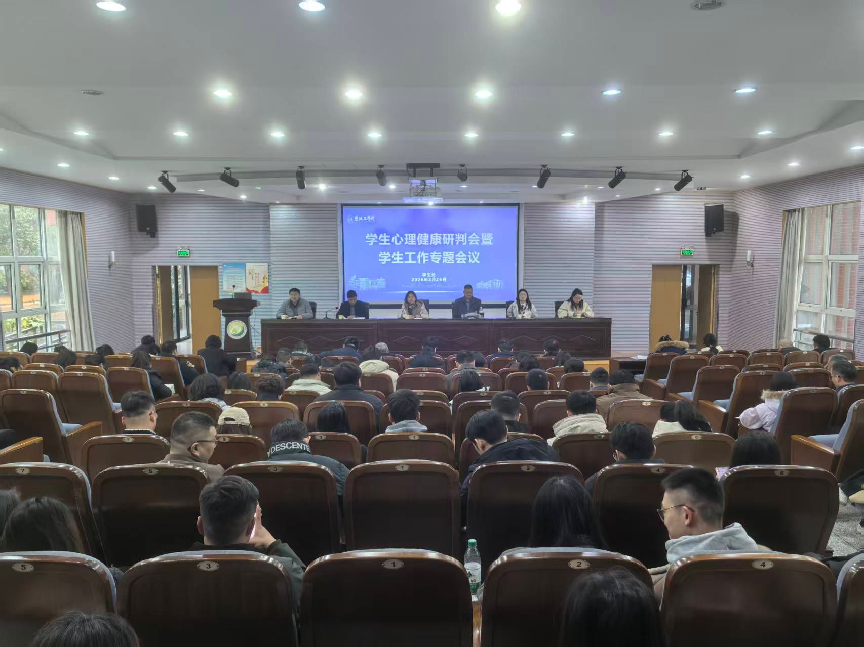 2月26日下午,在希望大道校区土木馆报告厅,真人赌博游戏_澳门赌博网-app*官网召开学生心理健康研判会暨学生工作专题会议。党委常委、副校长邢晓平主持会议。学生处、安保处、研究生院、团委、后勤服务集团负责人,二级学院分管学生工作书记,学工办(副)主任、团委(副)书记,学生处、团委科级以上人员,公寓管理中心主任、全体专兼职辅导员等参加。