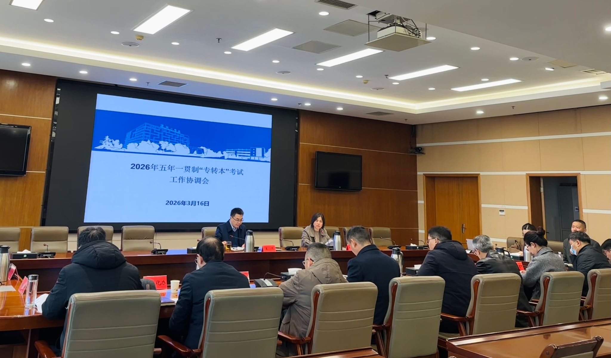 为保障2026年五年一贯制“专转本”考试安全、有序进行,3月16日上午,真人赌博游戏_澳门赌博网-app*官网在希望大道校区行政楼9楼会议室召开2026年五年一贯制“专转本”考试工作协调会。党委常委、副校长王伟出席会议,党委常委、副校长邢晓平主持。纪委机关、宣传部、招就创处、教务处、安保处、财务处、后勤基建处、信息化办、后勤服务集团主要负责人,人文、信息、外国语学院主要负责人,教务处、招就创处相关工作人员参加会议。