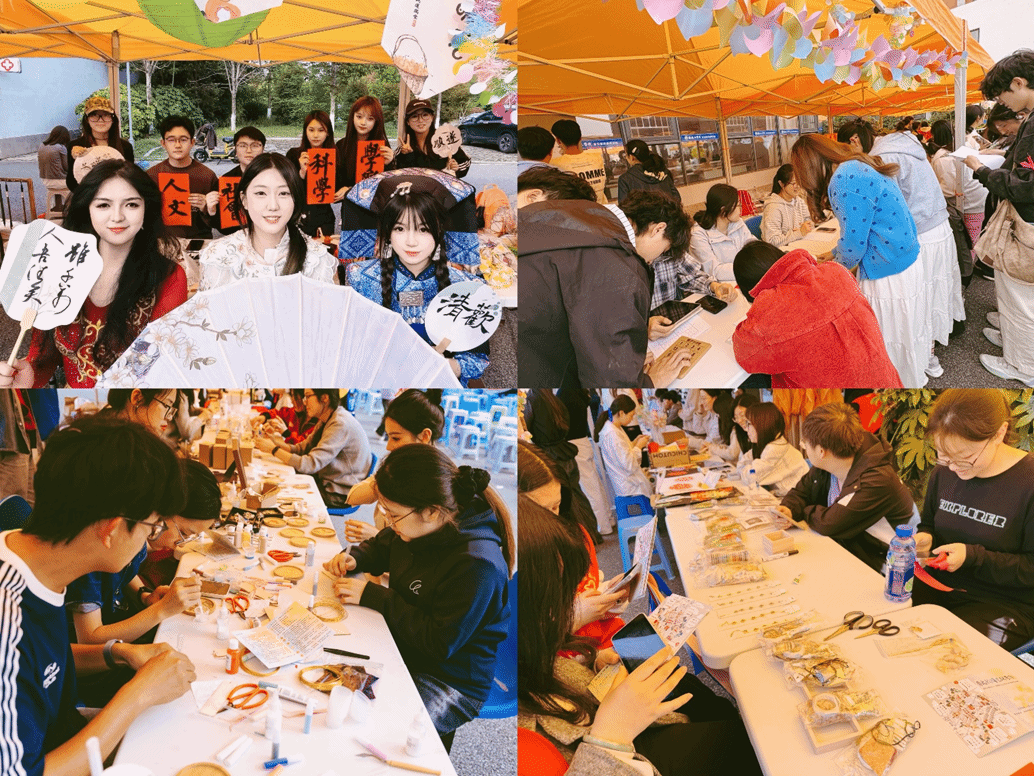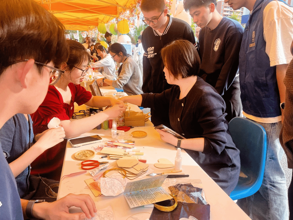 在手工DIY专区,掐丝珐琅画、马赛克拼贴、宋锦制作、剪纸、压花书签、书法诗词等体验项目有序开展。同学们动手制作精美手作,在指尖传承非遗技艺,感受传统工艺之美。掐丝珐琅画色彩绚丽、宋锦饰品精巧雅致、剪纸作品栩栩如生,大家在创作中沉浸式体验传统文化魅力,作品均可自行带走留存纪念。