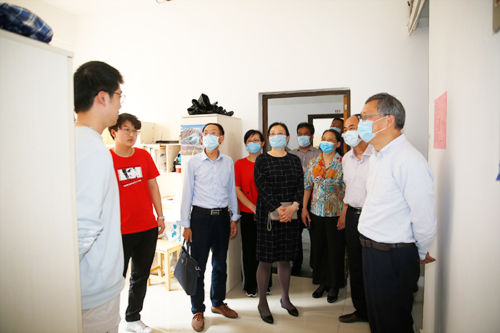在学生公寓,校领导一行与已返校学生亲切交流,详细了解学生在校生活、网课学习、就业考研等情况,叮嘱同学们严格执行真人赌博游戏_澳门赌博网-app*官网的各项防控要求,珍惜校园的美好时光,努力丰富学习生活,做好人生规划,珍惜韶华,不负青春,并提前祝同学们“五四”青年节快乐!