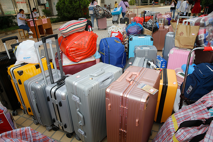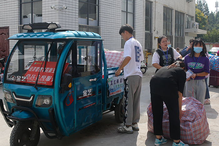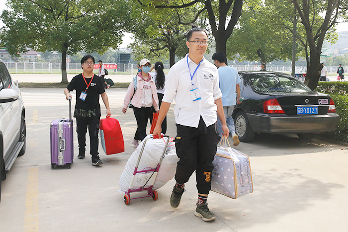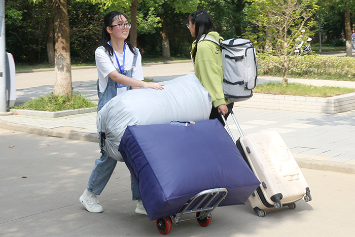 老师们也冲在一线,帮助同学们搬运行李