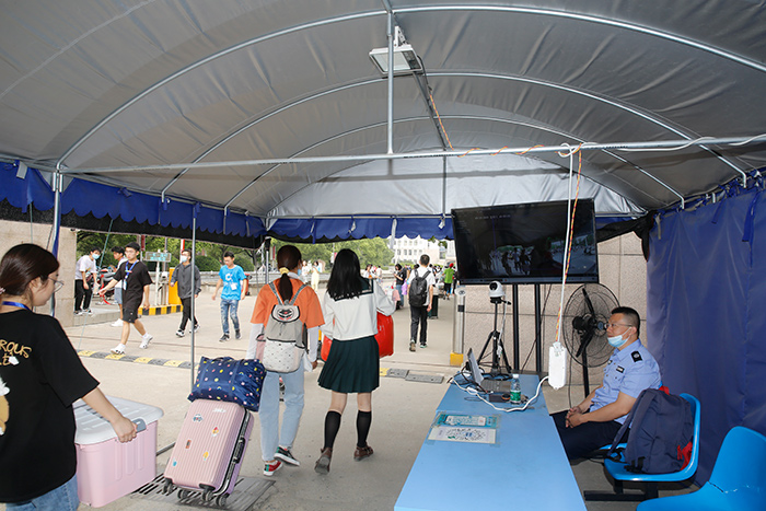 校领导到报道现场看望前来报到的新生,慰问服务迎新一线的老师和志愿者