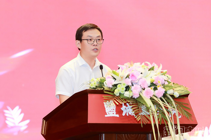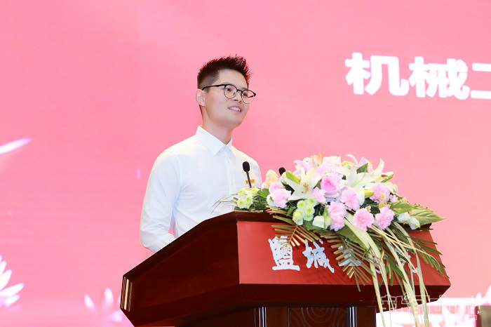 化学化工学院Y化工201班张艾彩君同学、机械工程学院Y机械191班彭启明同学,江苏省高校“青蓝工程”优秀中青年骨干教师,江苏省“六大人才高峰”高层次人才项目资助人选李亮博士,江苏省产业教授、金风科技股份有限公司海上业务单元副总经理陈小海先生分别代表研究生新生、在校生、研究生导师、企业发言。