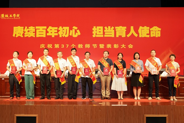 会上,学生向从教30年教职工代表献花。学生代表、盐城市优秀共青团员、校十佳青年志愿者、校三好学生、校团委学生兼职副书记、人文社会科学学院B中文181班许欣雨同学致感谢词。优秀教师代表、化学化工学院蔡照胜教授分享自己的教育教学经验和感悟。先进集体代表、土木工程学院院长吴发红交流了学院教育教学工作的务实举措。