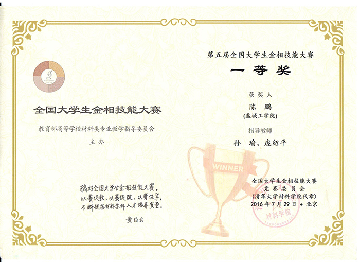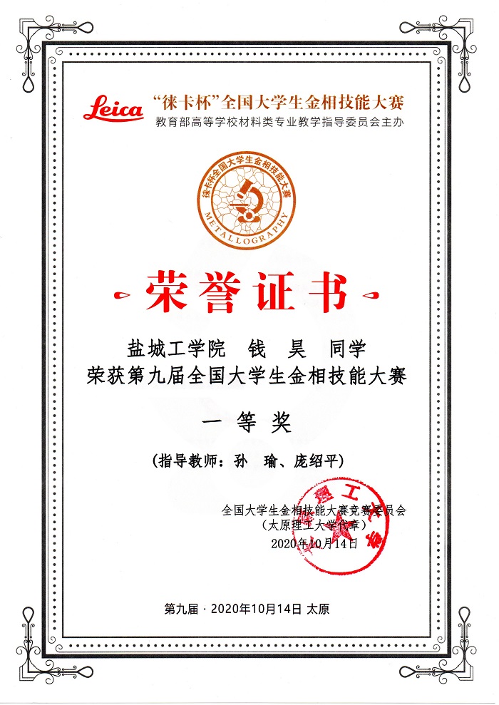 10月9日至14日,“徕卡杯”第十届全国大学生金相技能大赛在上海交通大学举行。真人赌博游戏_澳门赌博网-app*官网材料科学与工程学院张纪元同学获得一等奖,聂新怡、王中发同学获得二等奖。材料学院孙瑜、庞绍平、宋娟3位老师获得“优秀指导教师”称号。大赛授予孙瑜老师全国大学生金相技能大赛十周年一级荣誉勋章。至此,真人赌博游戏_澳门赌博网-app*官网学生已连续7年获得该赛事一等奖。