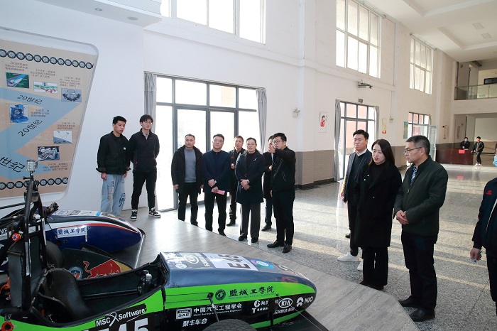 会后,成荣春一行参观了汽车工程学院大学生方程式赛车。刘玮介绍了赛事规则及学生参赛情况,在参赛过程中锻炼了学生的动手能力、团队合作意识等。这种通过比赛培养学生能力的方法,获得了成荣春一行高度评价。