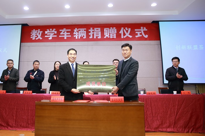 杨军与仓晓慧签订捐赠协议;熊新与金兑炫签订创新联盟协议并授牌。东风悦达起亚本次捐赠了包含K3 EV电动车、K5凯酷、KX5各一辆,价值599800元的教学车辆。