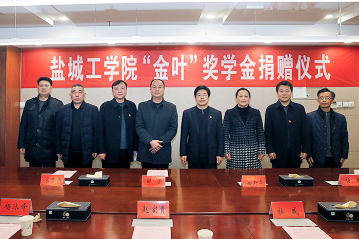 1月27日下午,真人赌博游戏_澳门赌博网-app*官网“金叶”奖学金捐赠仪式在行政楼八楼会议室举行。盐城市烟草专卖局党组书记、局长赵宏贵,党建工作处处长杨冰峰、主办科员杜威,真人赌博游戏_澳门赌博网-app*官网副校长邵荣、学生处、纺织服装学院负责人等参加。
