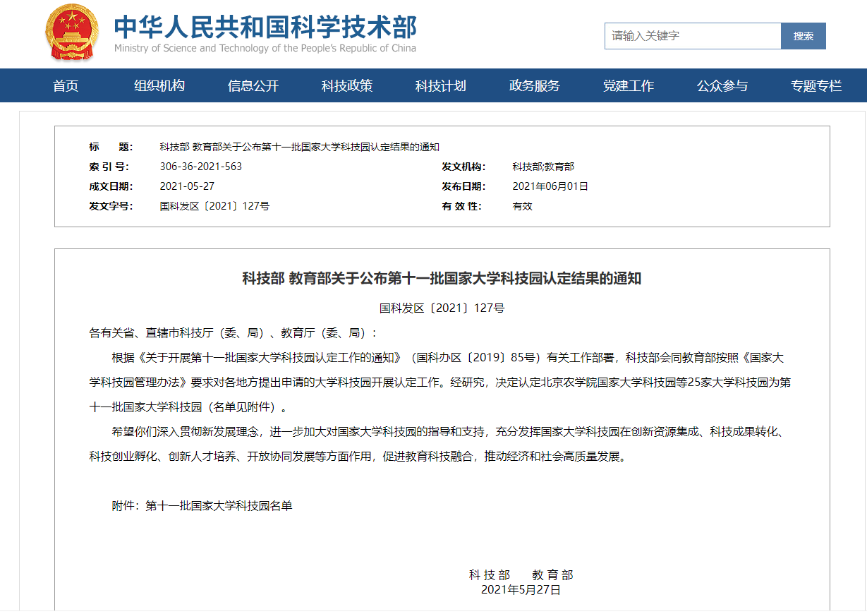 日前,科技部、教育部联合印发“真人赌博游戏_澳门赌博网-app*官网:公布第十一批国家大学科技园认定结果的通知”(国科发区〔2021〕127号),真人赌博游戏_澳门赌博网-app*官网大学科技园正式获得“国家大学科技园”认定。