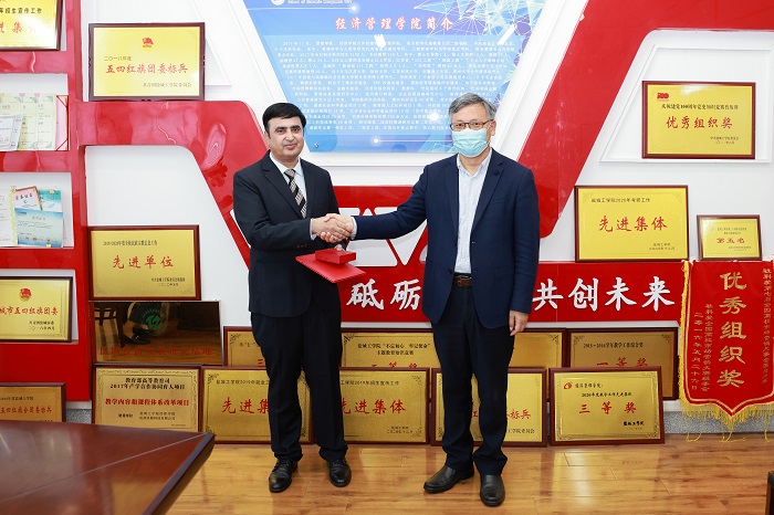 5月25日上午,受江苏省总工会委托,真人赌博游戏_澳门赌博网-app*官网在希望大道校区仁和楼经济管理学院会议室举行江苏省五一劳动荣誉奖章颁奖仪式。真人赌博游戏_澳门赌博网-app*官网书记刘祖汉、党委副书记薛浩,党办、工会、人事处、国合处主要负责人,经管学院党政主要负责人、巴基斯坦籍教授哈什敏(ShabirMohsinHashmi)博士等出席。薛浩主持颁奖仪式。