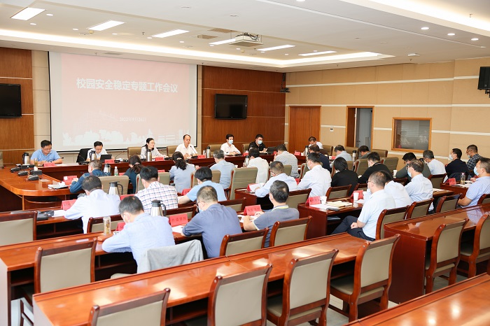9月26日下午,真人赌博游戏_澳门赌博网-app*官网在希望大道校区行政楼九楼视频会议室召开安全稳定工作专题会议。党委书记方海林,校长、党委副书记邵荣,党委副书记薛浩,党委常委、副校长王资生,党委常委、纪委书记、省监委派驻监察专员陈伟,副校长张勤芳出席。邵荣主持会议,相关职能部门负责人和各二级党组织书记参加。