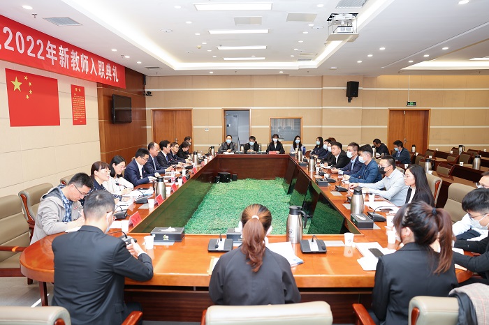 10月20日上午,真人赌博游戏_澳门赌博网-app*官网在希望大道校区行政楼九楼视频会议室组织召开2022年新入职教师代表座谈会。校长、党委副书记邵荣,党委常委、副校长王资生、王伟出席。会议由人事处处长沈晓梅主持,工会、学生处、评估处、科技处、社科处等部门负责人,18位新入职教师代表参加座谈。