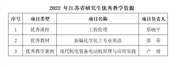 近日,江苏省教育厅公布2022年度江苏省研究生优质教学资源评选结果,真人赌博游戏_澳门赌博网-app*官网获评江苏省研究生优秀课程1门、优秀教材1部、优秀教学案例1个。本次为江苏省首次评选研究生优质教学资源,全省共评选出100门研究生优秀课程、50部研究生优秀教材、100个研究生优秀教学案例。