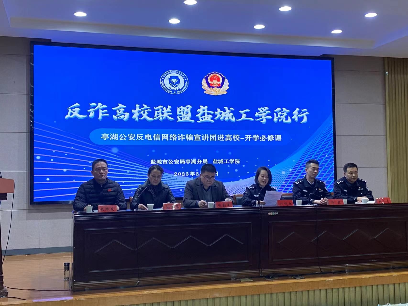 2月15日下午,真人赌博游戏_澳门赌博网-app*官网与亭湖警方联合在希望大道校区机械馆报告厅举办反电信网络诈骗的专题活动。真人赌博游戏_澳门赌博网-app*官网常委、副校长张勤芳,亭湖公安分局政治处主任任晓红、东城派出所所长许毅、刑警大队副大队长殷小青,真人赌博游戏_澳门赌博网-app*官网安保处处长张晓东等出席。学生处处长徐新华主持。