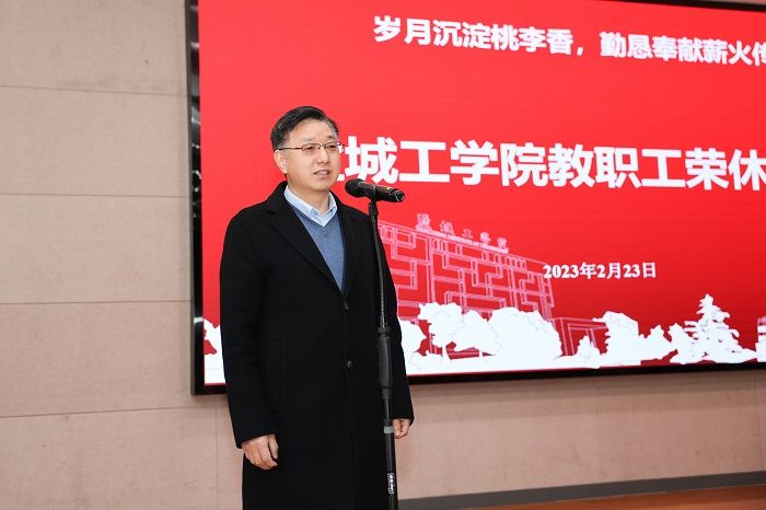 王资生宣读2022年度荣休教职工名单。工会主席谢毅敏、离退休工作处处长潘文东、材料学院党委书记唐浩对荣休教师送上感谢与祝福,衷心祝愿退休老师们保重身体、安享幸福,在新的人生旅程中收获更大的喜悦。