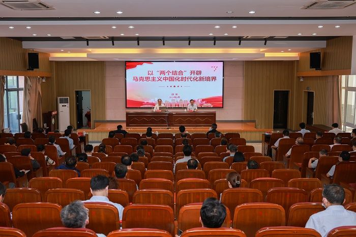 邵荣从马克思主义中国化时代化的提出背景与历史进程、“两个结合”与马克思主义中国化时代化的深刻内涵、“两个结合”的光辉典范——习近平新时代中国特色社会主义思想等三个方面,深刻阐述了习近平新时代中国特色社会主义思想开辟马克思主义中国化时代化新境界。从中国近现代历史演进系统梳理了马克思主义的传入与马克思主义中国化的提出、马克思主义中国化的第一次历史飞跃——毛泽东思想、马克思主义中国化新的飞跃——中国特色社会主义理论体系和马克思主义中国化时代化新的飞跃——习近平新时代中国特色社会主义思想。他指出,一百多年来,中国共产党坚持把马克思主义写在自己的旗帜上,不断推进马克思主义中国化时代化,用博大胸怀吸收人类创造的一切优秀文明成果,用马克思主义中国化时代化的科学理论引领伟大实践。