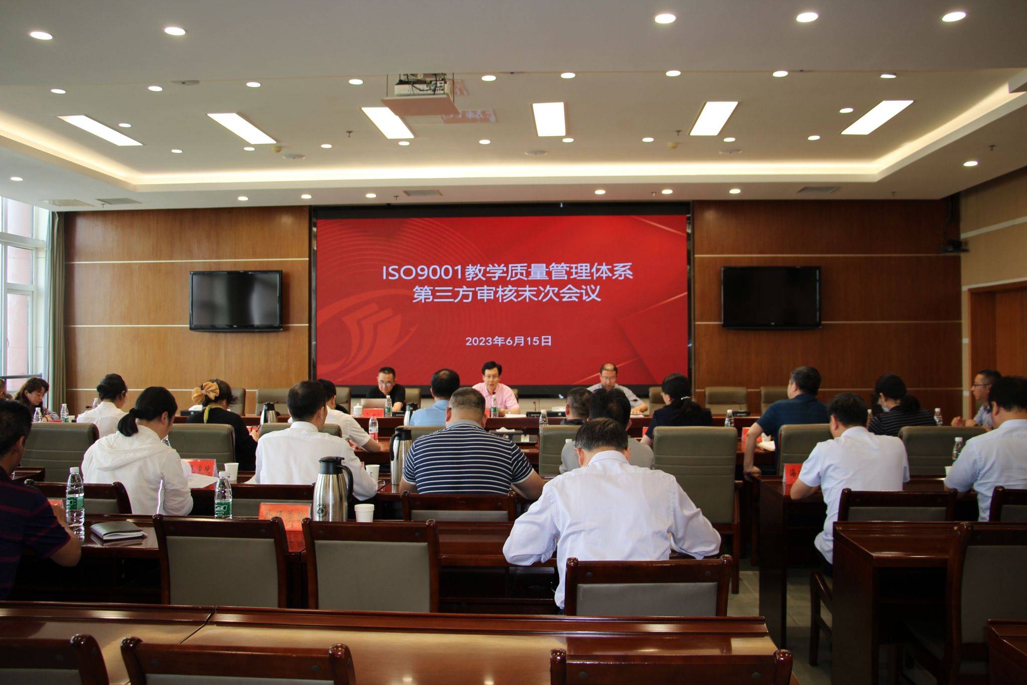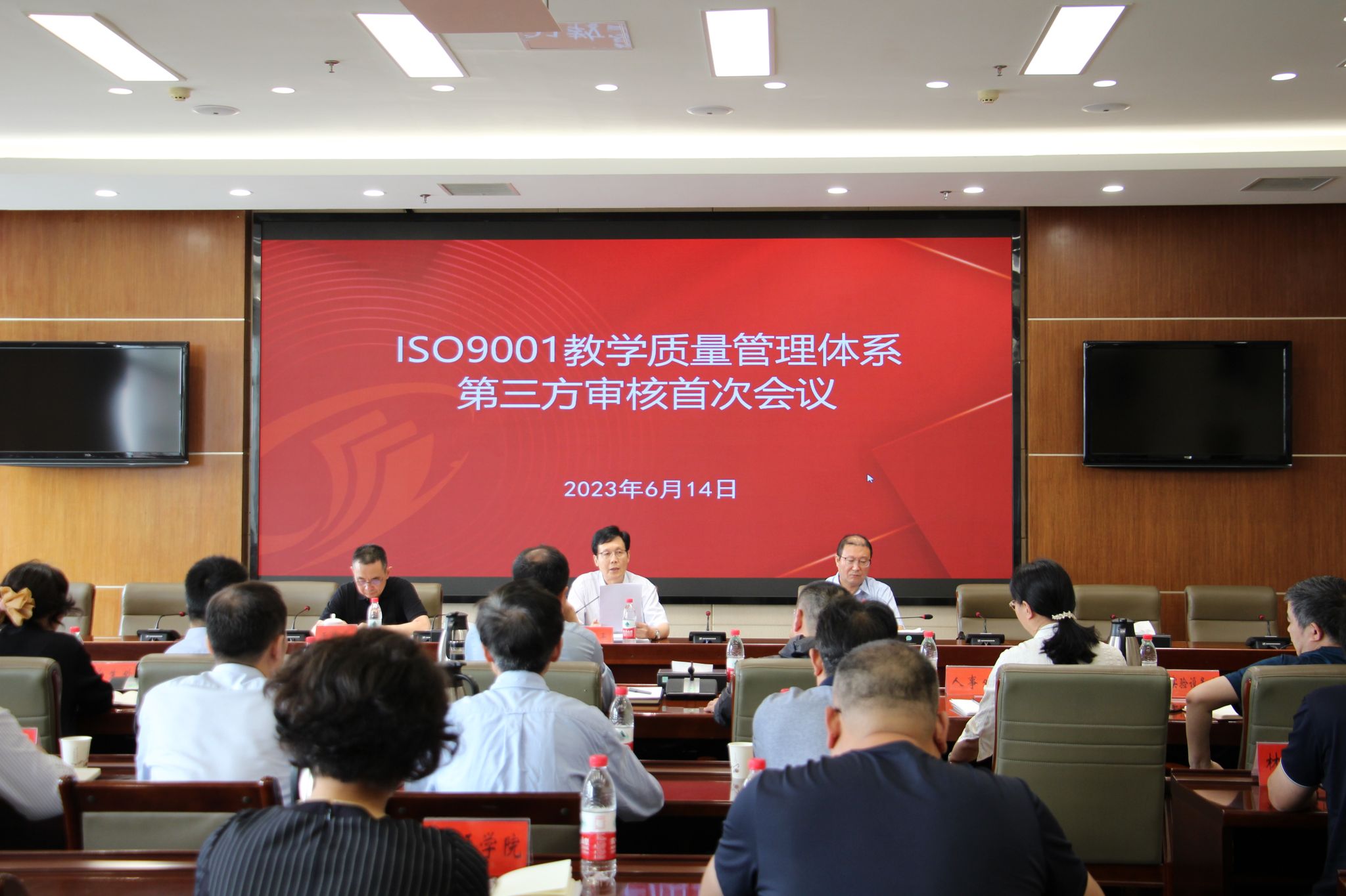审核组组长潘欣平主持召开了ISO9001教学质量管理体系第三方审核首次会议和末次会议,最高管理者、校长、党委副书记邵荣出席会议并讲话,管理者代表、党委常委、副校长王伟出席,审核组专家、体系内相关部门和各二级学院负责人参加。