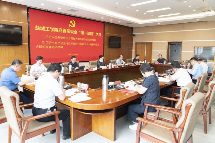 党委书记方海林主持。校长、党委副书记邵荣,党委副书记薛浩,党委常委、副校长崔刚、王资生、王伟,党委常委、纪委书记、省监委派驻监察专员陈伟,党委常委、党委统战部部长姚军,党委常委、党委组织部部长邢晓平,党委常委、党委宣传部部长奚新国出席,党办、校办、纪委机关等部门主要负责人参加。