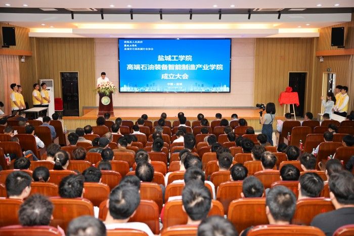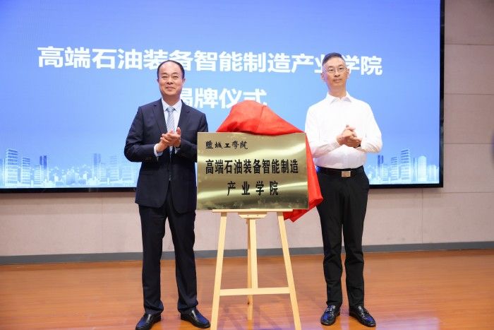 顾亚军代表盐城市委、市政府,对学院的揭牌成立表示祝贺。他指出,通过建立系统的专业人才培养培训及高层次人才引进体系,强化校企优势互补,促进教育链、人才链与产业链有机衔接,既是进一步落实全市重点产业链培育计划和“人才强链”行动部署要求,也是稳定就业、促进石油机械行业高质量发展的有效举措,必将为我市石油机械产业高质量发展提供持久稳定的人才支撑。