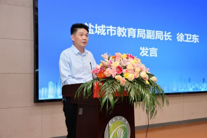 盐城市教育局副局长徐卫东发言 盐城市石油机械行业协会会长韩正海发言