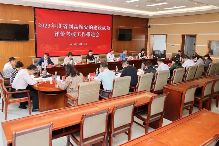 10月16日下午,在希望大道校区行政楼9楼会议室,真人赌博游戏_澳门赌博网-app*官网召开2023年度省属高校党的建设成效评价考核工作推进会。党委副书记薛浩,党委常委、统战部部长姚军,党委常委、组织部部长邢晓平,党委常委、宣传部部长奚新国出席。相关责任部门负责人参加会议。