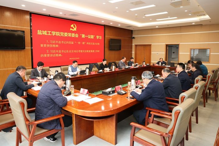 党委书记方海林主持。校长、党委副书记邵荣,党委副书记薛浩,党委常委、副校长崔刚、王资生,副校长、盐城市政协副主席丁成,党委常委、副校长王伟、张勤芳,党委常委、党委统战部部长姚军,党委常委、党委组织部部长邢晓平,党委常委、党委宣传部部长奚新国出席,党办、校办、纪委机关等部门主要负责人参加。