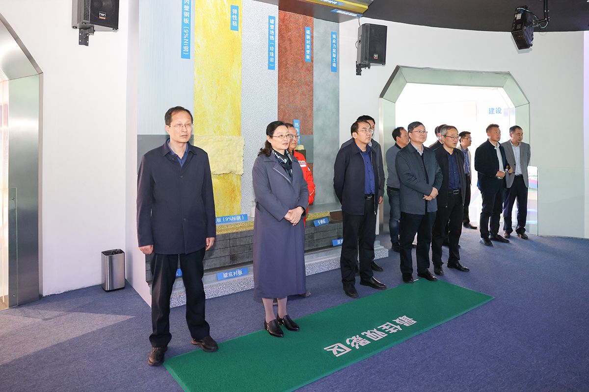 在中国海油LNG展馆,讲解员为大家介绍了中国海油LNG的发展历程、产业布局,重点讲解了盐城绿能港总体布局、LNG储罐建设流程、“滨海老牛哥”精神传承等内容。方海林向工作人员详细询问了中国海油LNG运用储罐冷能拓展养鱼,冷链运输,干冰制作等新质生产力项目的具体举措。