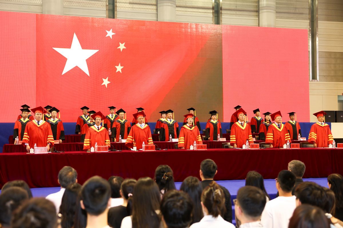 毕业典礼在庄严的国歌声中拉开帷幕。
