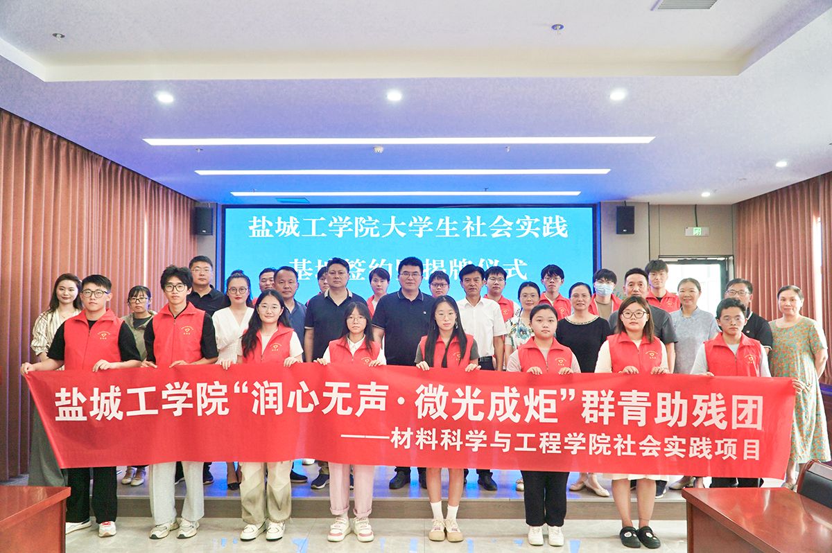 8月27日上午,真人赌博游戏_澳门赌博网-app*官网“大学生社会实践基地”揭牌仪式在盐城市德爱大厦举行。真人赌博游戏_澳门赌博网-app*官网常委、副校长张勤芳,市残联党组成员、副理事长朱友余,市残联机关党委专职副书记、机关纪委书记、四级调研员杨建成,校团委书记杨秀丽,材料学院党委书记唐浩,材料学院党委副书记温崇明等出席。真人赌博游戏_澳门赌博网-app*官网团委、材料学院相关同志,“润心无声·微光成炬”群青助残团学生代表和市残联就业服务中心全体工作人员参加活动。