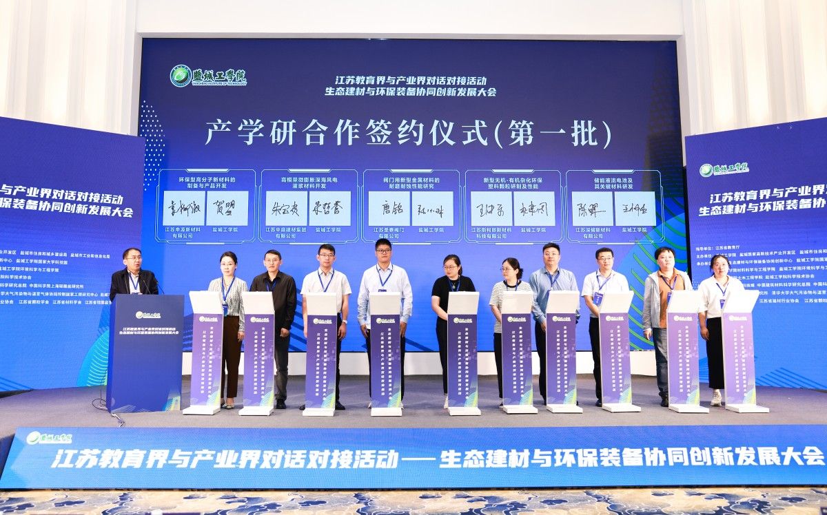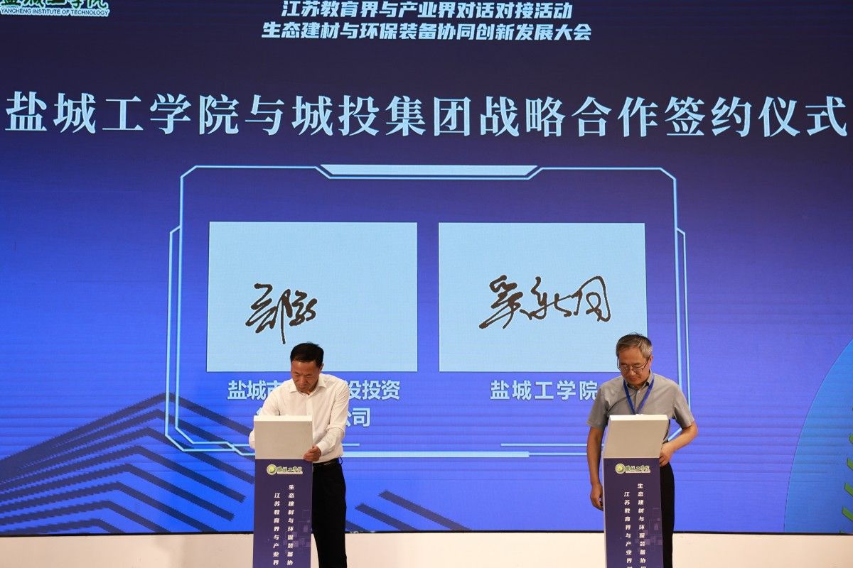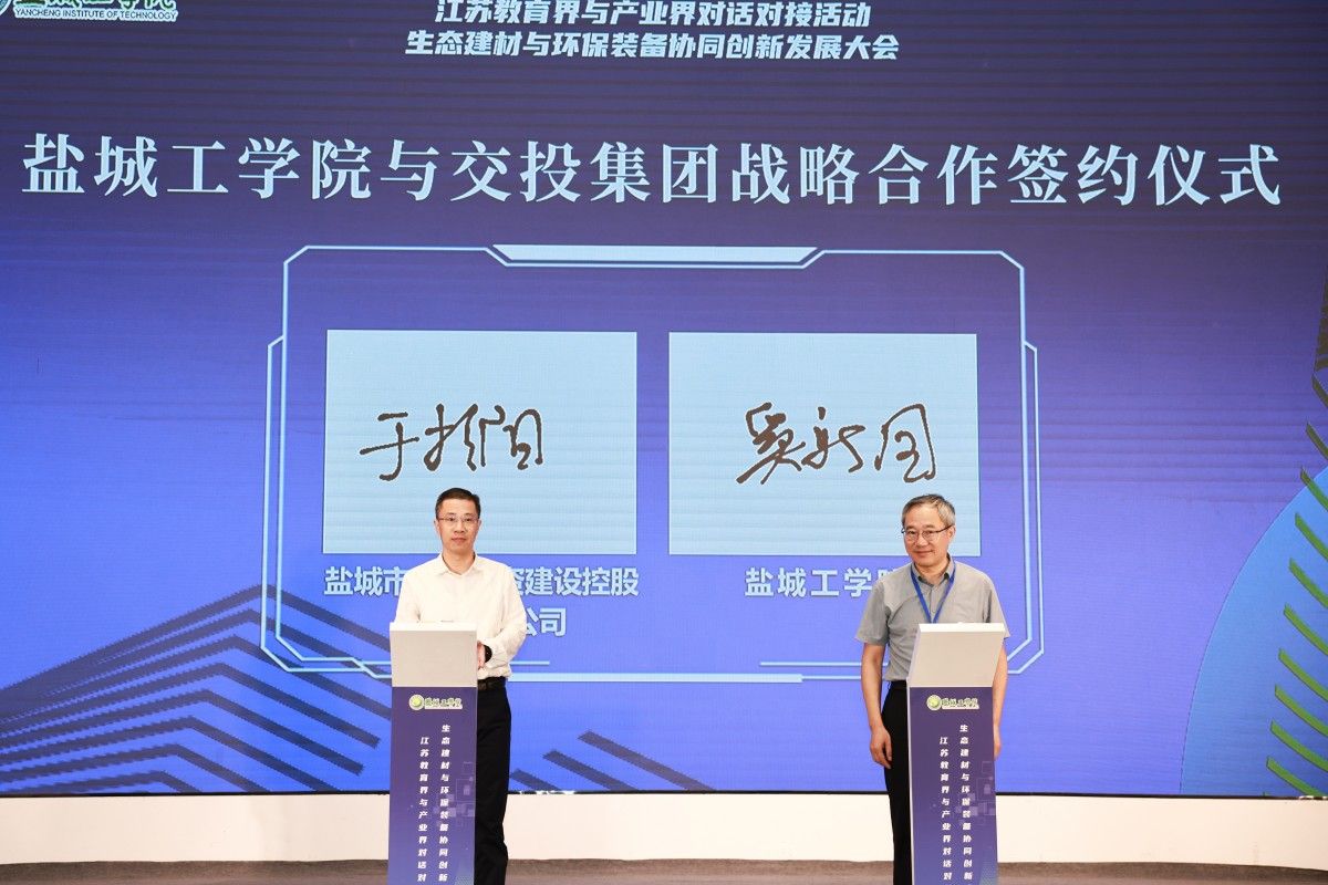 会上,真人赌博游戏_澳门赌博网-app*官网与江苏悦达集团有限公司、盐城市城市建设投资集团有限公司、盐城市交通投资建设控股集团有限公司签订了战略合作协议。同时,真人赌博游戏_澳门赌博网-app*官网多个校级科研机构也与20家企业举行了产学研合作集体签约仪式。科学技术处处长高健发布了67项生态建材与环保装备科技成果和52个企业产业人才与技术需求,为校企双方的深度合作搭建了桥梁。