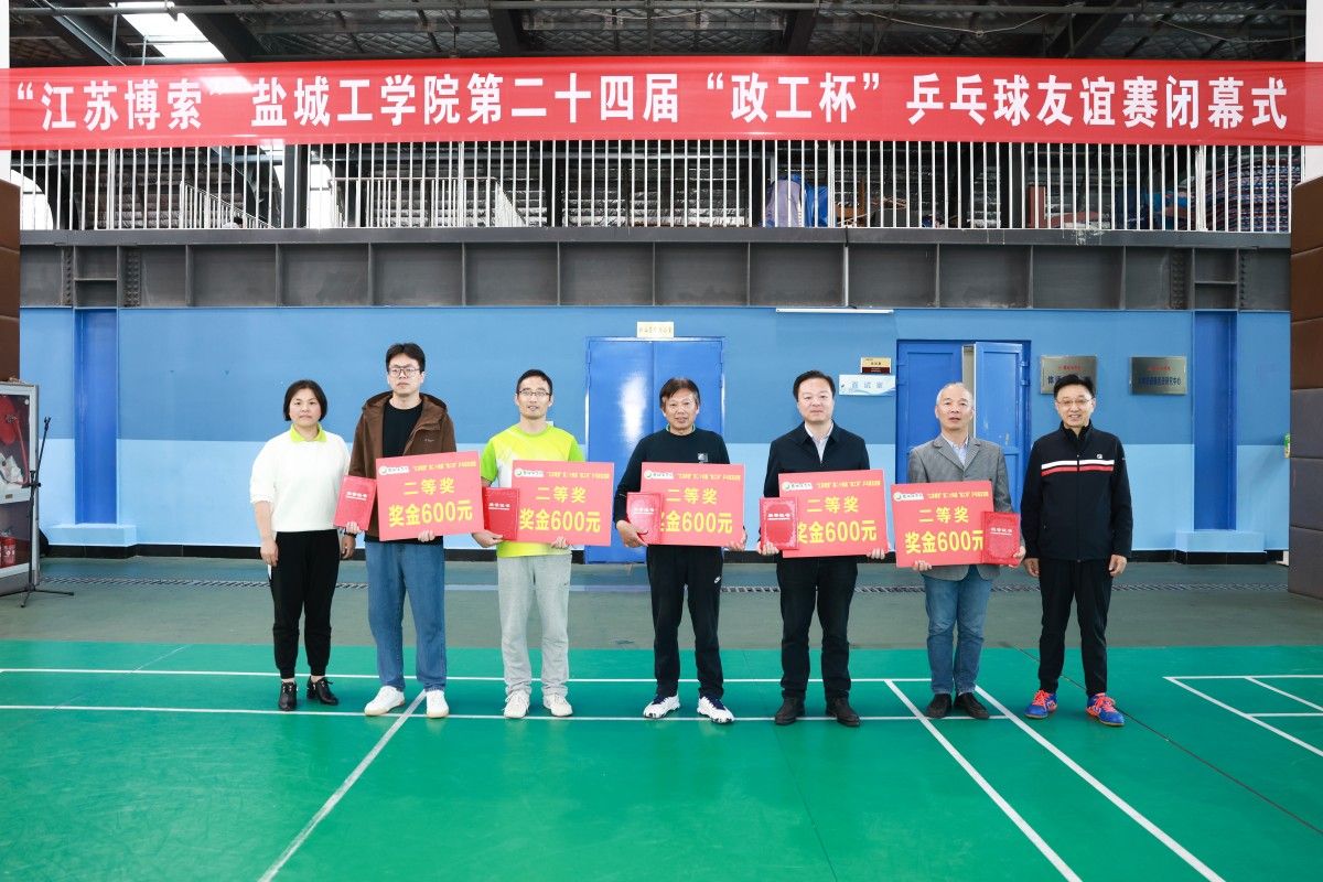 本届乒乓球友谊赛由学生处、工会、体育学院联合举办,江苏博索送变电工程有限公司赞助,共有31支代表队报名参赛。经过小组赛、交叉淘汰赛两阶段的激烈角逐,校领导代表队获特等奖,机关四分会、材料科学与工程学院分会共2支代表队获一等奖,化学化工学院分会、关工委老同志代表队、体育学院分会、外国语学院分会、信息工程学院分会共5支代表队获二等奖,机关一分会、机关六分会、数理学院分会、土木工程学院分会、汽车工程学院分会、机械工程学院分会、纺织服装学院分会、马克思主义学院分会共8支代表队获得三等奖。