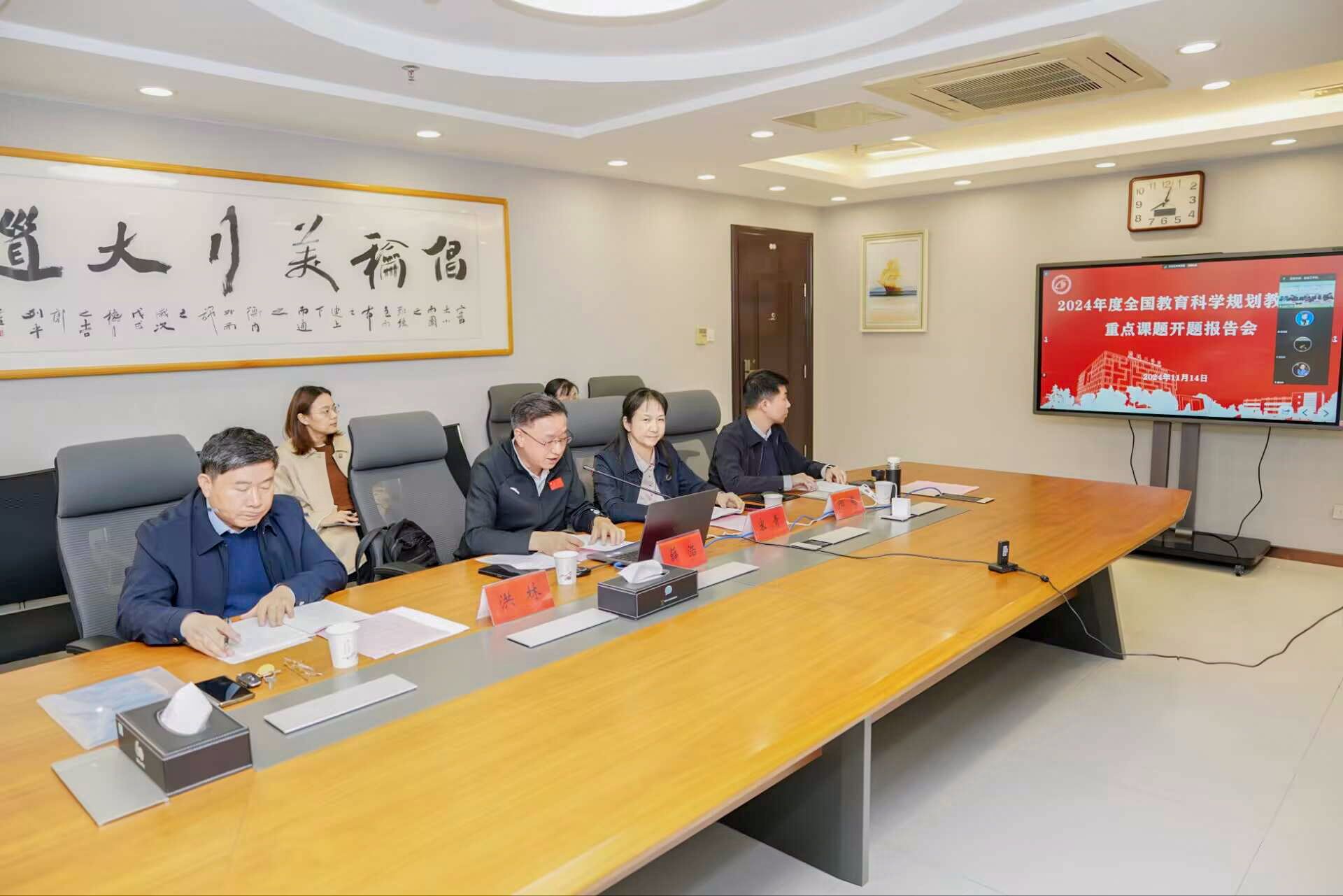 11月14日晚,在希望大道校区 行政楼802会议室,真人赌博游戏_澳门赌博网-app*官网以线上线下相结合的形式举行2024年度全国教育科学规划教育部重点课题开题报告会。真人赌博游戏_澳门赌博网-app*官网副书记薛浩教授到会并讲话。省教育科学规划领导小组办公室主任董林伟教授,南京航空航天大学陈万明教授,盐城师范学院陈玉祥教授,真人赌博游戏_澳门赌博网-app*官网洪林研究员担任本次开题评议专家。2024年度全国教育科学规划教育部重点课题负责人及其课题组成员、高教院全体人员参加开题会议。高教研究院院长、发改办主任宋青主持会议。
