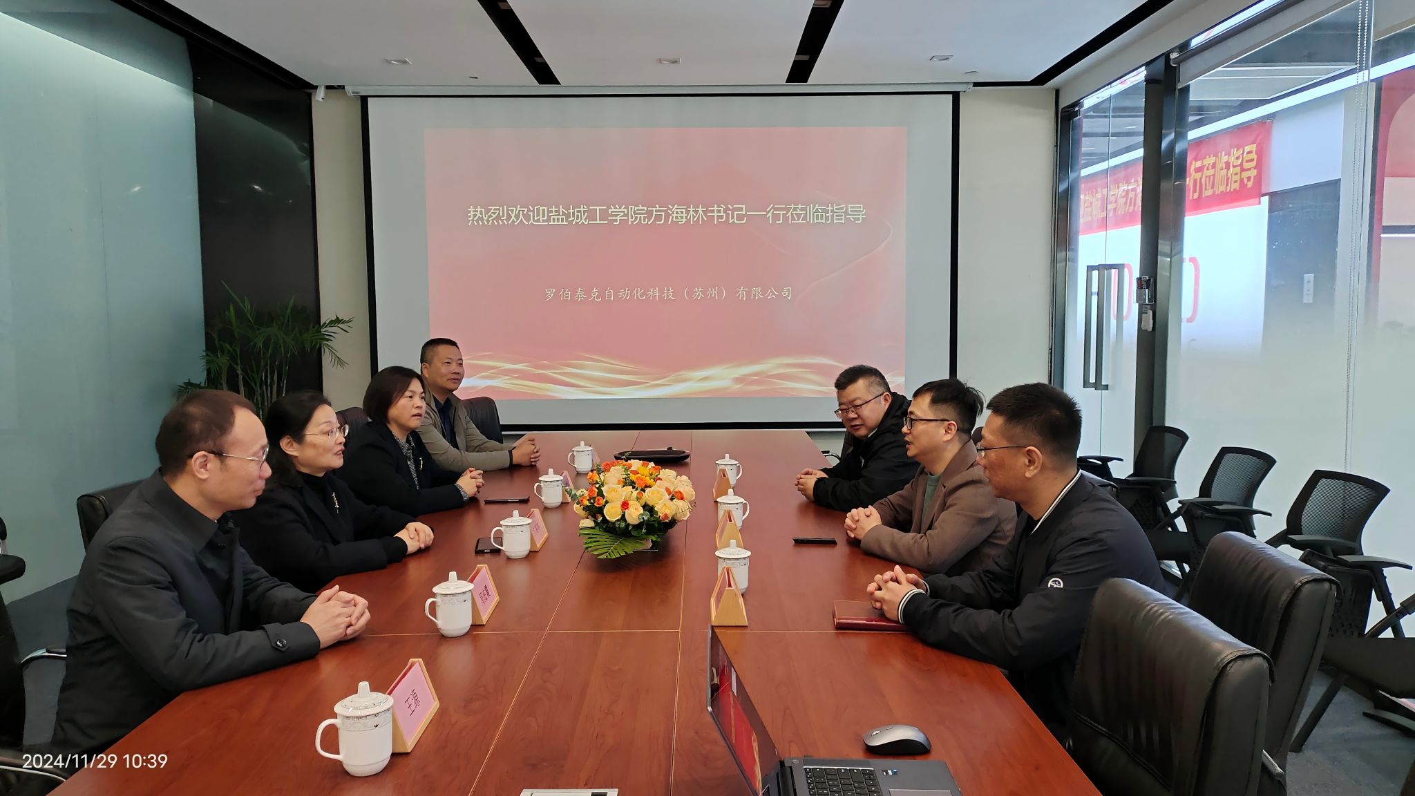 为深入贯彻党的二十届三中全会精神,落实党中央、国务院真人赌博游戏_澳门赌博网-app*官网:促进高质量充分就业决策部署,进一步深化校企合作,拓宽毕业生就业渠道,11月29日,真人赌博游戏_澳门赌博网-app*官网书记方海林,党委常委、副校长、组织部部长邢晓平带队到校友企业罗伯泰克自动化科技(苏州)有限公司开展访企拓岗促就业专项行动,做实做细就业指导服务,加快推进毕业生就业工作进程。罗伯泰克自动化科技(苏州)有限公司副总经理邓俊挺、厉明福,工程师赵成明,校招生与就业创业指导处、人事处、信息工程学院等负责同志陪同调研。
