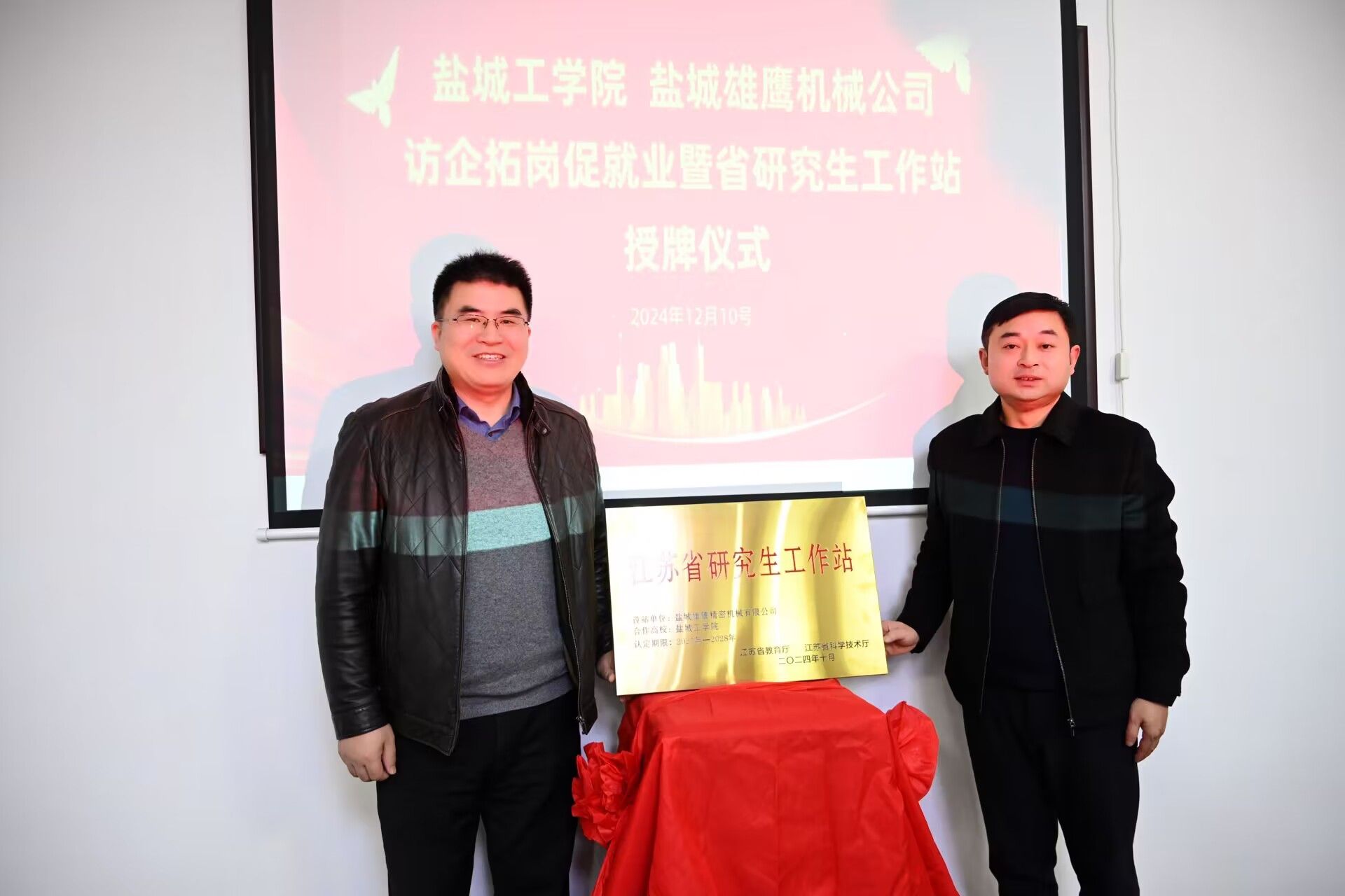 12月10日下午,党委常委、副校长张勤芳为江苏中创清源科技有限公司、盐城雄鹰精密机械有限公司等两家江苏省研究生工作站授牌。江苏中创清源科技有限公司副总经理霍文强、盐城雄鹰精密机械有限公司董事长郭乃宏热情接待真人赌博游戏_澳门赌博网-app*官网一行。