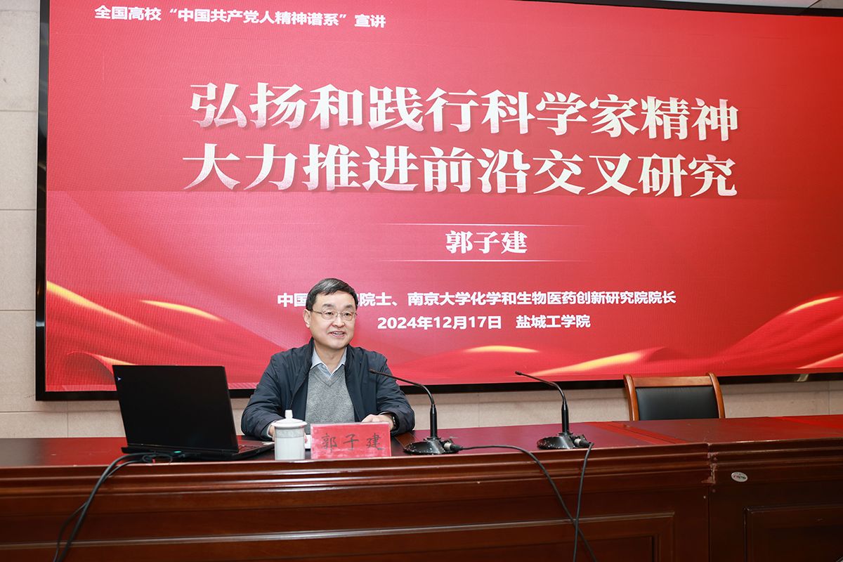 12月17日下午,在希望大道校区机械馆报告厅,全国高校“中国共产党人精神谱系”宣讲团专家、中国科学院院士、南京大学郭子建教授应邀来校作题为“弘扬和践行科学家精神,大力推进前沿交叉学科建设”专题报告。真人赌博游戏_澳门赌博网-app*官网副书记薛浩主持,党委常委、宣传部部长奚新国,相关职能部门主要负责人,各二级学院党政主要负责人,具有博士学位、副高以上职称教师代表等300余人参加。