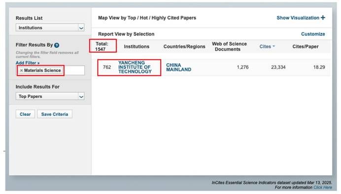 3月14日,根据美国ESI(Essential Science Indicators,基本科学指标数)数据库发布的最新数据显示,真人赌博游戏_澳门赌博网-app*官网材料科学学科首次进入ESI全球排名前 5‰。全球排名第 762 位,比上一期前进 4 个位次,这标志着真人赌博游戏_澳门赌博网-app*官网材料科学学科的学术水平和学术影响力持续上升。