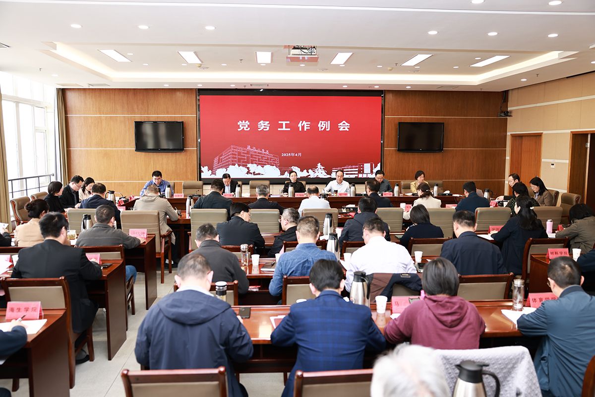 4月7日下午,在希望大道校区行政楼九楼视频会议室,真人赌博游戏_澳门赌博网-app*官网召开党务工作例会,听取党群部门汇报并部署4月份主要工作。党委书记方海林,党委副书记、校长邵荣,党委副书记薛浩,党委常委、纪委书记、省监委派驻监察专员陈伟,党委常委、副校长张勤芳,党委常委、副校长、组织部部长邢晓平,党委常委、统战部部长姚军,党委常委、宣传部部长奚新国出席。薛浩主持会议,各党群部门负责人、二级党组织书记和机关党支部书记参加。