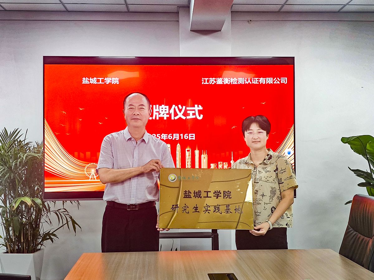 授牌仪式上,邵荣分别为江苏鉴衡检测认证有限公司研究生实践基地授牌,为江苏衡建项目管理有限公司研究生就业基地授牌。