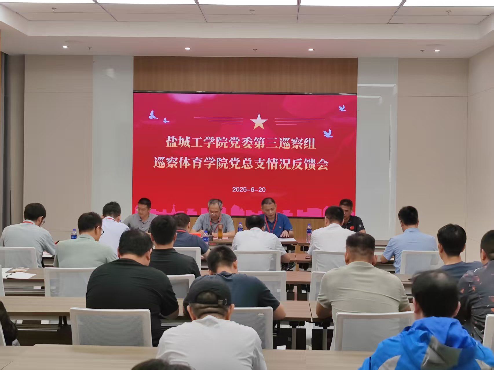 6月20日上午,四届党委第五轮巡察完成巡察反馈,党委第一、第二、第三巡察组分别向后勤服务集团党委、人文社会科学学院党总支、体育学院党总支反馈巡察意见。巡察工作领导小组副组长、党委副书记薛浩,党委巡察工作领导小组副组长、党委常委、纪委书记、省监委派驻监察专员陈伟,党委巡察工作领导小组成员、党委常委、宣传部部长奚新国出席反馈会,党委巡察组、意识形态专项检查组全体成员,被巡察党组织全体教职工参加会议。