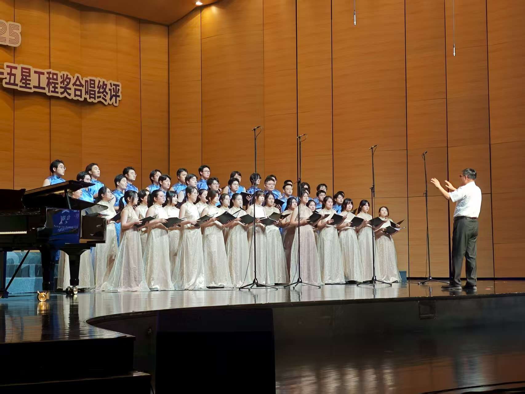 本次评选全程分初评和综评两大环节,每一轮都考验着团队的综合实力。 在“五星工程奖”盐城市初评中,“梦之声”合唱团凭借干净通透的声音、色彩明确的和声与富有张力的舞台表现,最终以全市第一名的优异成绩强势晋级全省终评,为冲击省级最高奖项筑牢根基。初评的胜利并未让合唱团成员停下脚步。在指导教师沈小锋的悉心带领下,团队迅速投入到高强度的备战中,从发声技巧的精准校准到情感表达的细腻打磨,每一个细节都力求完美,合唱团成员们克服学业与训练的双重压力,以 “精益求精” 的态度投入每日训练,评选前真人赌博游戏_澳门赌博网-app*官网特别邀请到业界权威 —— 原江苏省歌舞团指挥、国家一级指挥、国家一级作曲马熙林先生亲临指导,最终“梦之声”合唱团以稳定卓越的发挥、饱含深情的演绎,成功将 “五星工程奖” 收入囊中,让真人赌博游戏_澳门赌博网-app*官网的艺术教育成果在省级舞台上大放异彩。