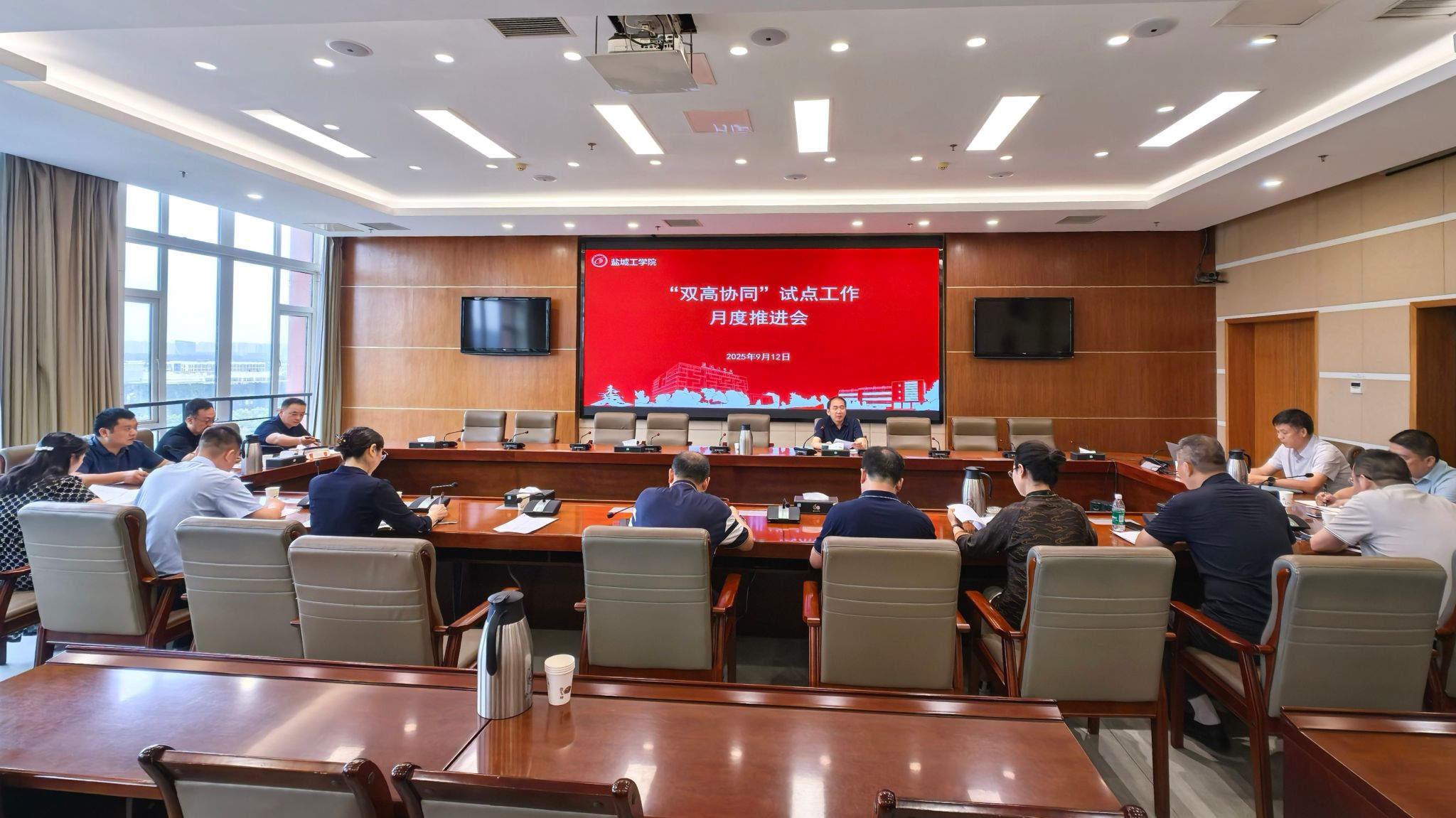 为进一步落实省委省政府工作要求和真人赌博游戏_澳门赌博网-app*官网决策部署,加快推进“双高协同”试点工作全面铺开,9月12日上午,真人赌博游戏_澳门赌博网-app*官网在希望大道校区行政楼9楼视频会议室,召开“双高协同”试点工作月度推进会。副校长、盐城市政协副主席丁成主持会议。校办、纪委机关、学生处、人事处、教务处、财务处、科技处、研究生处、发改办、大学科技园、环境学院、信息学院、材料学院等部门负责同志参会。